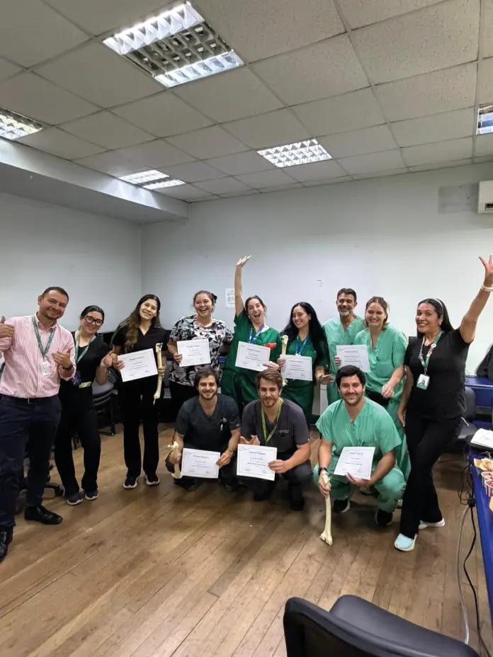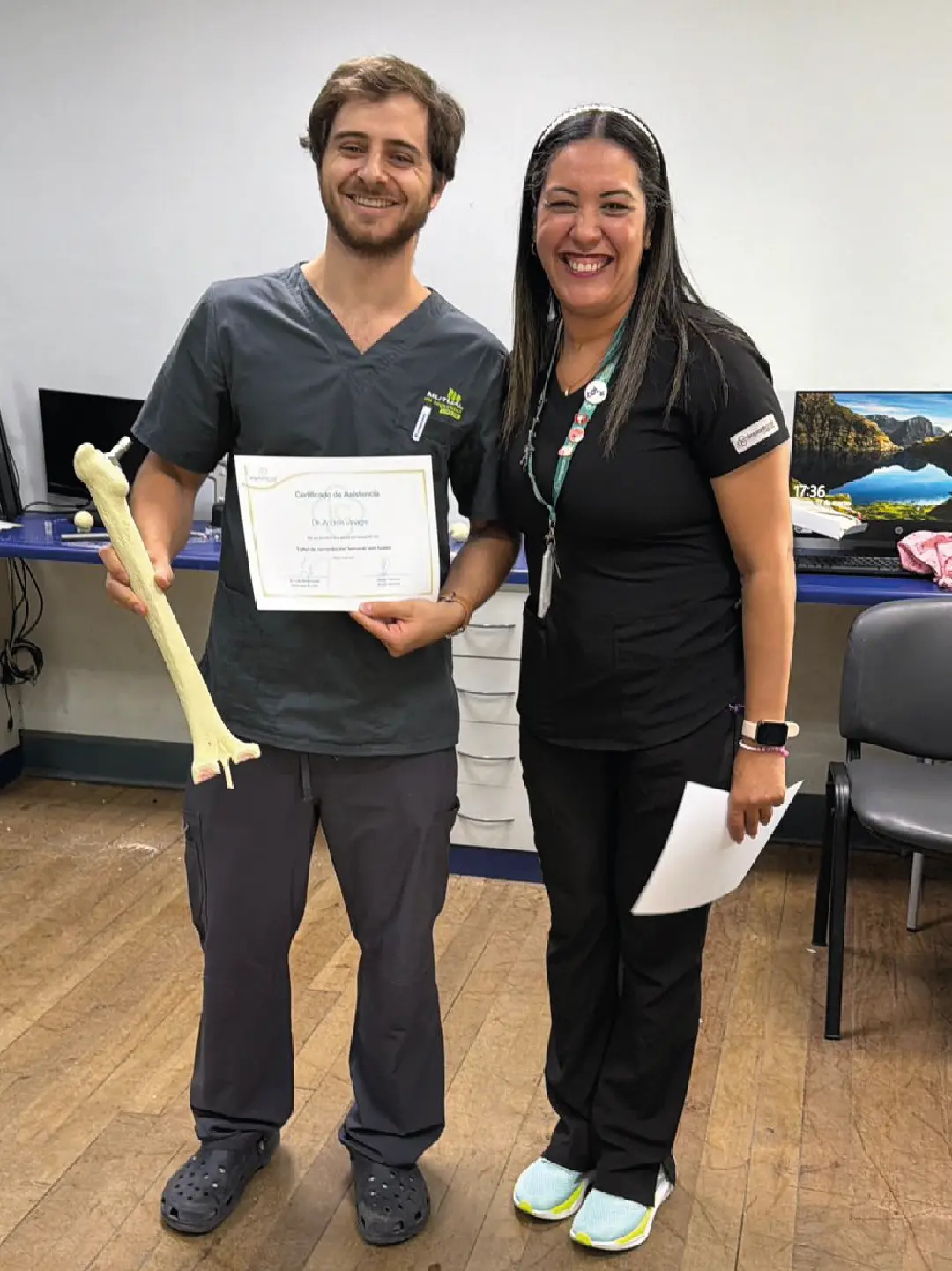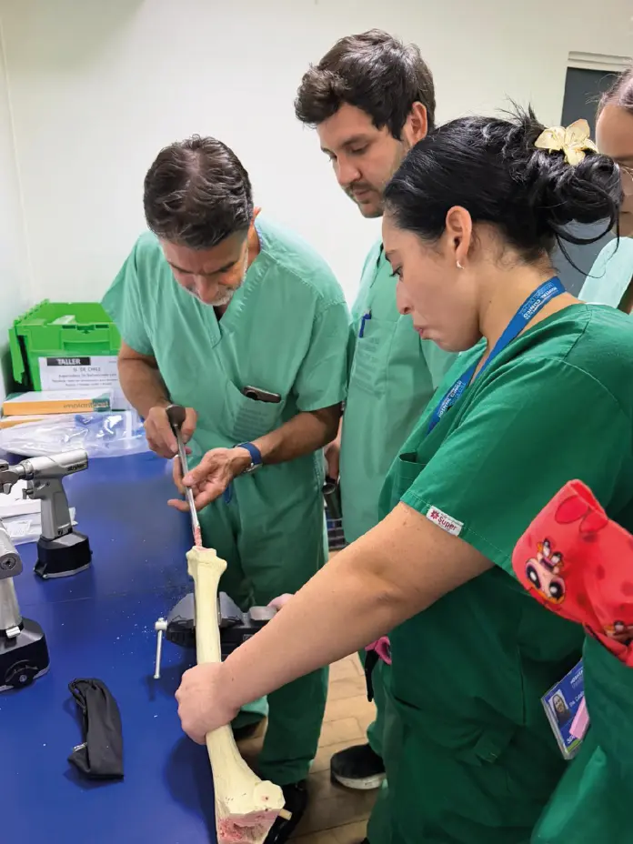 La actividad estuvo dirigida a becados de primer año de traumatología y fue liderada por el Dr. Luis Bahamonde, quien orientó la jornada académica en torno a una técnica clave para la práctica quirúrgica ortopédica. Este tipo de entrenamientos permite reforzar conocimientos, desarrollar habilidades técnicas y acercar a los futuros especialistas a escenarios de formación aplicada.