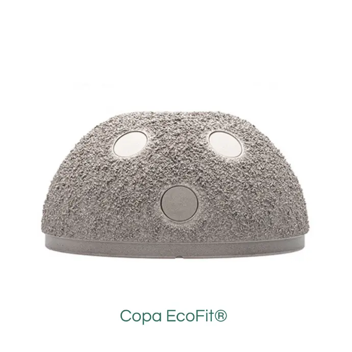 Los cotilos EcoFit® cuentan con un orificio central en la base acetabular para la fijación del impactor, lo que permite una impactación segura y controlada del implante. Una vez asentado el cotilo, este orificio central se puede tapar con un tapón de tornillo central. El cotilo EcoFit® también cuenta con tres orificios obturados que se pueden retirar, incluso con el cotilo impactado, para la inserción de tornillos de esponjosa adicionales y mejorar la estabilidad primaria (si es necesaria). Estos tornillos se pueden angular hasta en 15°.